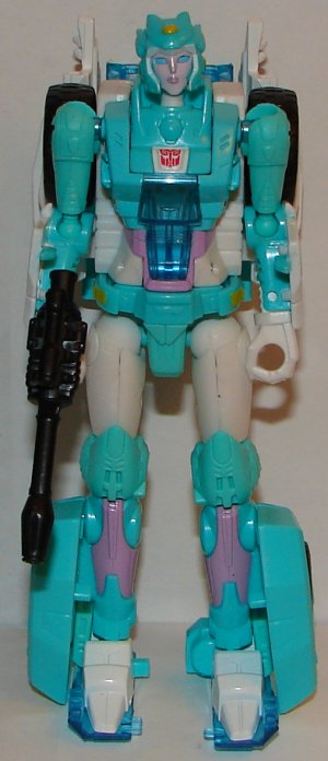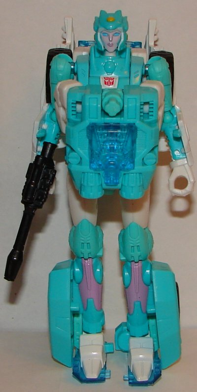 Robot Mode: While her vehicle mode may not be great, she looks awesome in robot mode. I love the head sculpt and paint apps.