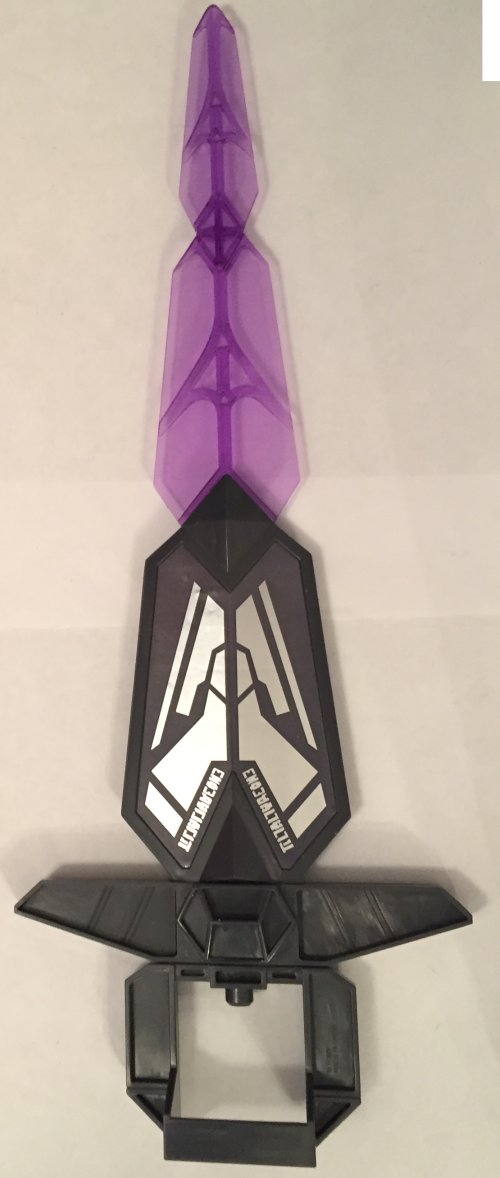 The Super God Sword (I think that’s the right name) was repurposed (and repainted with a blue blade) from the Japanese version of Fortress Maximus with a new handle and included in the Toys R Us Japan Exclusive God Fire Convoy gift set. This version has a translucent purple blade to better match the look from the cartoon. The handle is now cast in a harder plastic so it doesn’t bend like the original version, which was made of plastic that was way too soft.