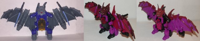 I am a little disappointed that he doesn’t come with his original weapons. They actually form his tail, so it’s a little odd that he has no tail. His swords are repainted from Transformers: Prime Deluxe Wheeljack. Unfortunately, due to the soft plastic and the bag being pulled against his head in the box, one of his ears is malformed. It sucks, but that’s what happens with this soft plastic. Convobat has a great paintjob.