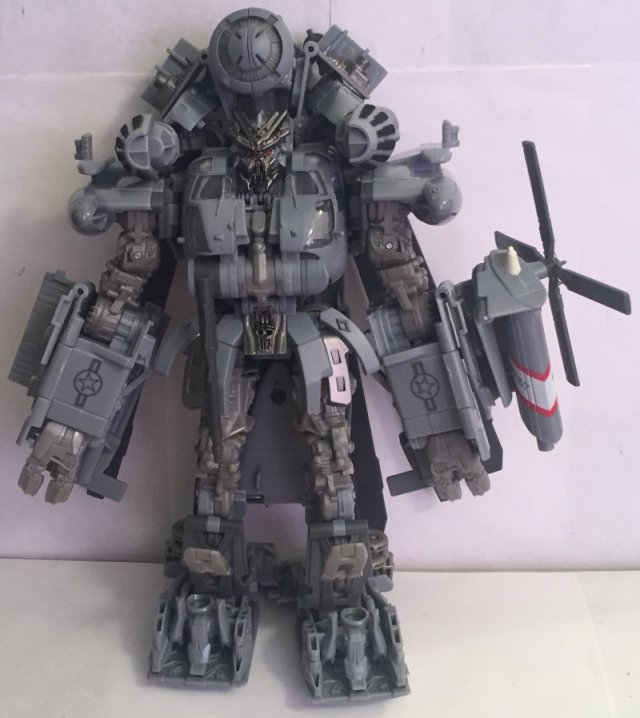 Robot Mode: Blackout’s robot mode is fantastic. He’s got tons of molded details. His tail rotor goes onto his arm as his weapon. In the movie it was his main rotor, but it’s otherwise very accurate. The only problem is his hands. They aren’t hands and can’t be turned to even look like hands. Since he doesn’t have a weapon to hold, it’s not an issue of functionality, it just looks wrong. Still, his hands are such a small thing compared to his awesomeness.