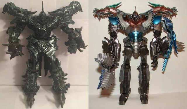 Comparison photos are with the Age of Extinction Platinum Edition Leader Grimlock which is a completely different mold.