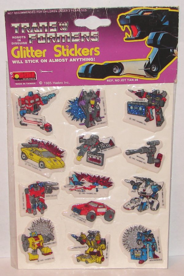 Transformers Glitter Stickers were manufactured by Jotastar in 1985. I watched this on eBay for months, before I finally pulled the trigger. I paid to much, but I’ve never seen another set mint in package. I do have a few of the loose stickers.