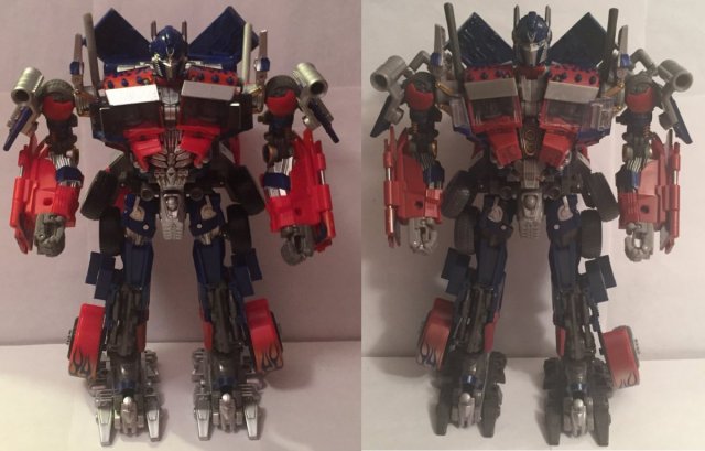 For a review of Movie The Best Leader Class Optimus Prime, you can read my review of the Asia Premium Series Optimus Prime Ultimate Edition. The paint job on this version is less dark than the Revenge Version pictured for comparrison.