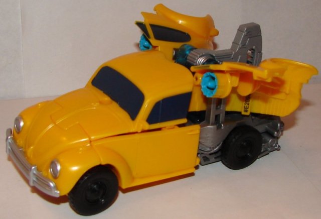 Vehicle Mode: Bumblebee looks great in his VW Bug mode. Amazingly, they painted all his windows. I’m not a fan of his armored mode. It flips up the entire back of the car just to deploy a cannon on each side. Leaves him looking kind of weird.