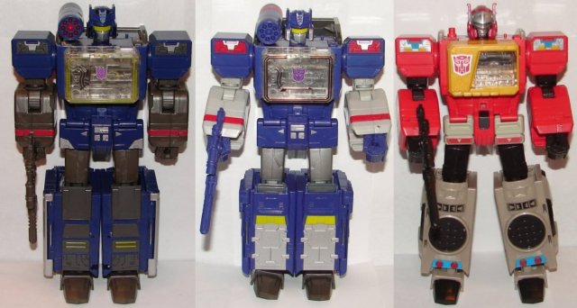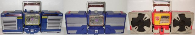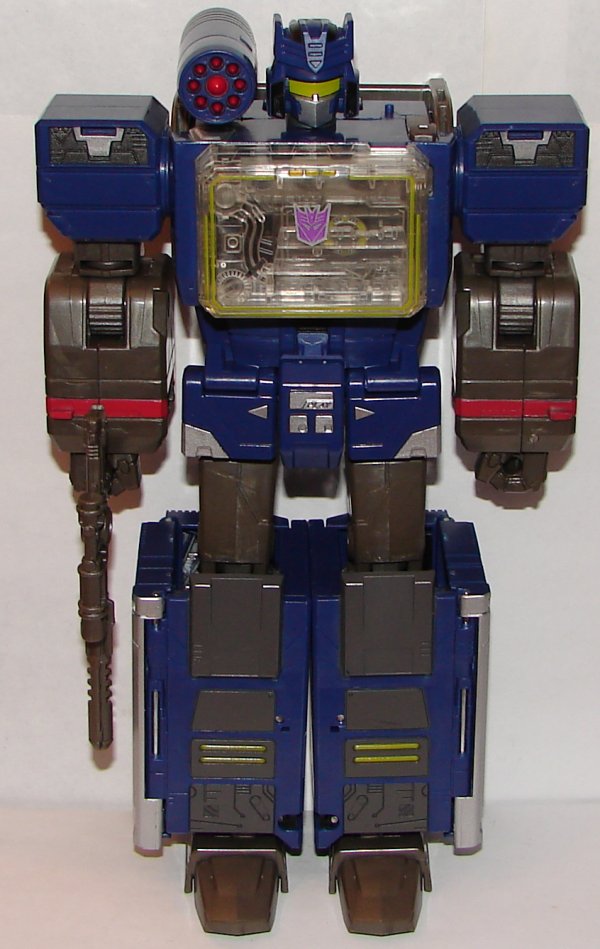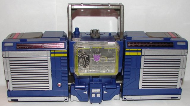 Soundwave is a repaint and remold of Titans Return Soundwave. He has had the front sides of his cassette player mode remolded. These changes can be seen on his legs in robot mode.