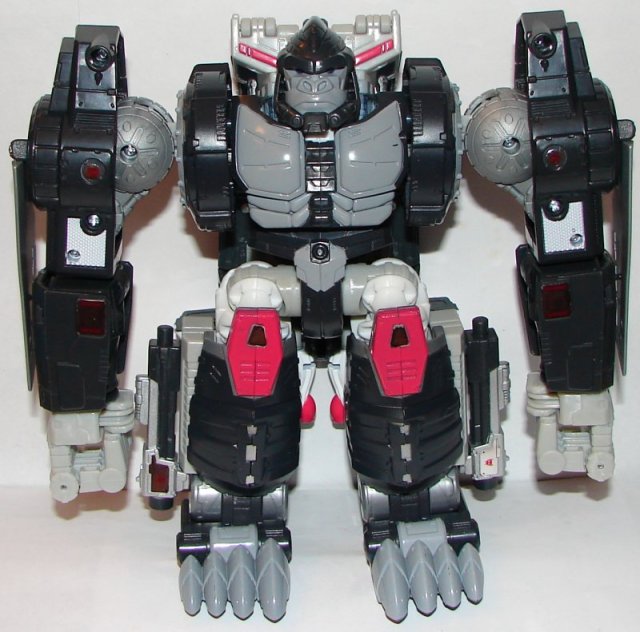 Large Robot Mode: Optimal Optimus looks awesome, though they should have just called him Optimus Primal for obvious reasons. The crown and scepter are pretty cool, but it’s kind of hard to get the Prime Masters out of the scepter.