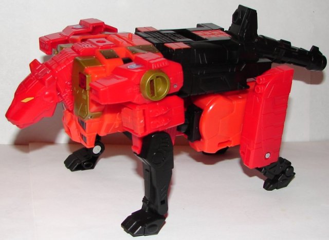 Beast Mode: Headstrong looks pretty cool. Very reminiscent of the original toy. Unfortunately, you can see Predaking’s enormous thigh and hip hanging under his beast mode.