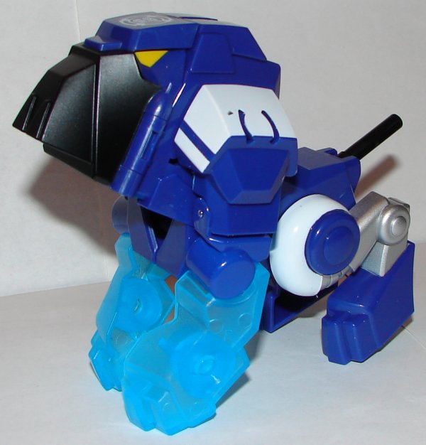 Sergeant Slaughber is apparently a dog, though his face design is very odd. Not really all that doglike. He splits in two and becomes armor and a weapon for Bumblebee.