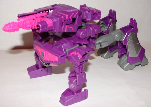Vehicle Mode: Shockwave transforms into a headless robotic dog. Unless you have a better name for it, that’s what I’m going with. I don’t know why, but I didn’t mind the Warrior Class Shockwave vehicle mode as much as this. Not sure why, as they are basically the same.