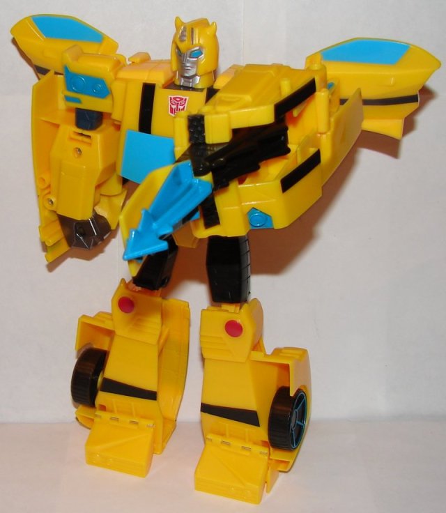 Robot Mode: He looks pretty good in robot mode. Not sure I love any of the Bumblebee head sculpts from this line, but its accurate. He has a flip out weapon.