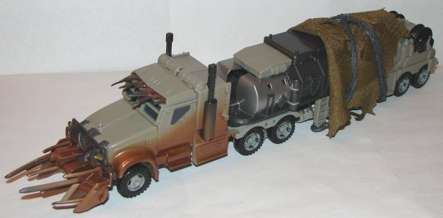 Vehicle Mode: After the Transformers 2010 toy series Hasbro said that they were no longer going to make Leader Class Decepticons as they didn’t sell well enough. Prior to that there had only been four different Leader Class Decepticon molds based on the movies, Brawl (2007) (repainted as Deep Dessert Brawl), Megatron (2007), Megatron (ROTF) (repainted as Shadow Commander Megatron), and Starscream, (2010). Since then there has only been one more, The Last Knight Megatron. With the exception of Brawl, who was a pretty good toy, all the rest were anywhere from awful to at best okay. Then came the Studio Series, and Hasbro seemed to figure out that Decepticon Class leader toys will sell if they don’t suck. Blackout was awesome. It’s only taken them twelve years, but we finally have a movie Leader Class Megatron that is truly amazing. Not perfect, but damn close. The spikes on the front and roof of the cab are soft plastic, which is unfortunate, but not unexpected. Other than that, my only complaint about his vehicle mode is that the instructions don’t really show any particular way his tarp is supposed to go onto his vehicle mode. If you look at the instructions, the shapes along the edges of the tarp do not match the actual tarp from the toy. It’s not a major thing, but I would have liked to see a specific way it was meant to go on.
