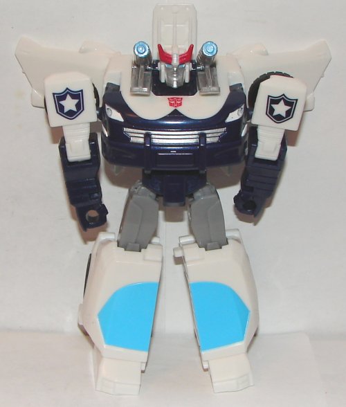 Robot Mode: Prowl looks great in robot mode. His shoulder cannons are deployed by pushing down on his chest. He looks even better with them deployed. I love the paint apps. He’s perfect.