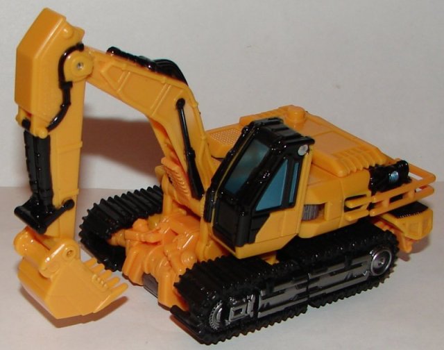 Vehicle Mode: Scrapmetal’s excavator mode looks great. He has great paint apps and lots of molded details. I have a few issues with his design. The treads don’t really lock in place, so they tend to separate in the middle very easily. Also, the piece that sits right behind his cab doesn’t seem to line up properly with the other parts forming the back of the vehicle. It’s not glaringly bad. I need to fiddle with it some more. It’s possible there is some subtle thing that’s not lined up, but I can’t imagine what that is. He’s not a super complicated toy.