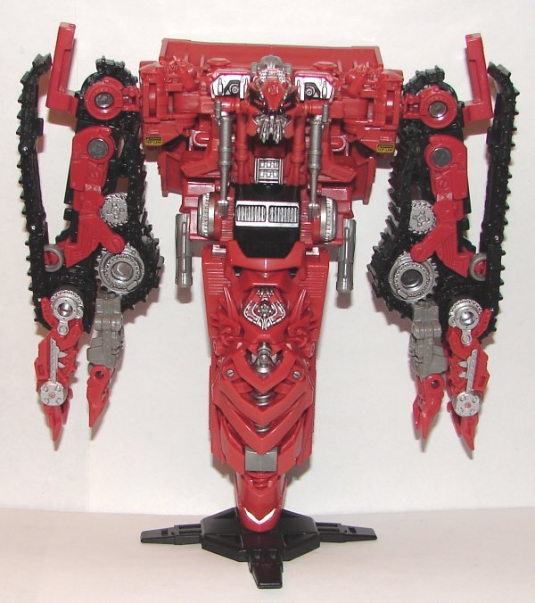 Devastator is combined from eight Constructicons (nine if you include Skipjack, AKA yellow Rampage). Read my reviews of Deluxe Class Hightower, Deluxe Class Scrapmetal, Voyager Class Long Haul, Voyager Class Mixmaster, Voyager Class Rampage, Voyager Class Scrapper, Voyager Class Skipjack, Leader Class Overload, Leader Class Scavenger, and Combiner Devastator.