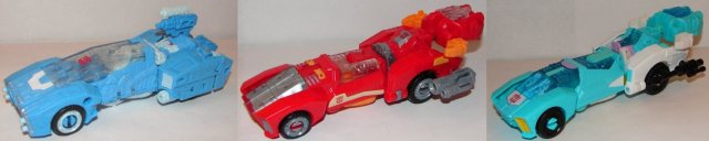 Vehicle Mode: What Hasbro did with Chromia makes very little sense. Chromia is either a remold of Moonracer and Novastar or a whole new mold using the same basic design, depending how you look at it. Overall, I prefer this vehicle mode, but they had to include to little blue pegs that are extensions of her gun to plug in on the back to fill in the big empty space. Maybe better than the previous two, but not great.