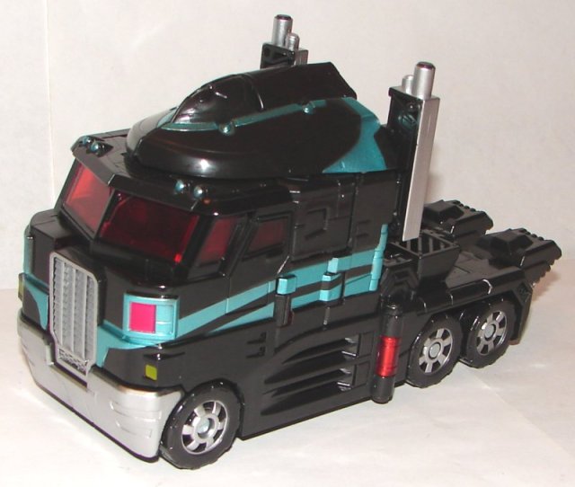 This is one of my favorite Transformers molds of all time, and it looks amazing in black. This is a truly beautiful toy. The silver and teal paint apps look awesome in truck mode. In robot mode his paint apps are perfect.