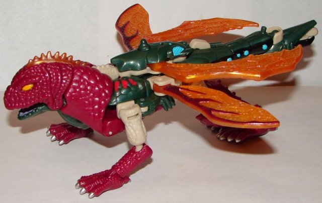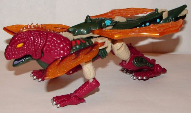 Robot Mode: There is really nothing I like about his robot mode. His head sculpt has a missile coming out of it. His right hand is a giant claw made of wings, and his right is sort of a claw sticking out behind his iguana head. I hate the wings at the sides of his chest.