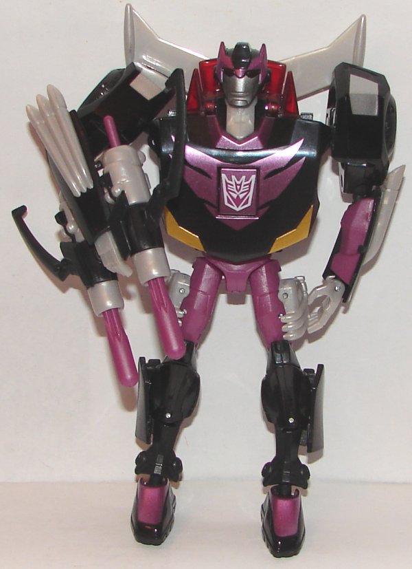 Robot Mode: I have never loved the aesthetic of Transformers: Animated. Rodimus isn’t bad looking, but I don’t love it. I’m not crazy about his head sculpt, though I love his dual crossbow. Again, I think I prefer the Rodimus colored version, but this one is pretty cool.