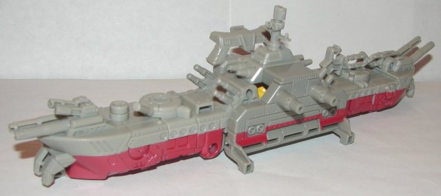 There is not much to Ocean Storm. He has a lot of molded details, but needed more paint apps. I’m only sure what the front is because of the tower. Bumblebee’s vehicle mode is pretty cool. Paint apps are minimal, but they did get most of his windows. In robot mode he looks fine. When Bumblebee combines with Ocean Storm he has…two extra arms. Okay, I guess. I’ve seen worse. I like the combined head sculpt. Yellow paint apps on his combined chest would have made him look better.