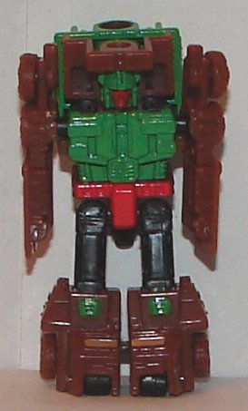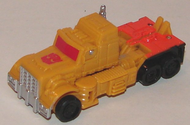 Ricon is an original character and not based on any previous toy. According to TFWiki his name is based on a sticker appearing on G1 Ironworks that said “RI Construction”, which is clearly a reference to the location of Hasbro’s headquarters. They toy is repainted from the yet to be released Highjump but has a different head and chest that are based on Micromaster Monster Truck Patrol member Hydraulic. No way to know if this means we aren’t getting the Monster Truck Patrol or not. It’s a pretty cool mold, but the legs on mine don’t stay together properly in gun mode (see below). Not sure if it’s cheap plastic or a design flaw.