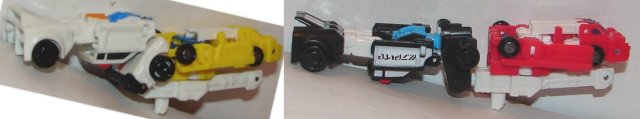 Road-Police is a repaint of Stakeout. Road Police was a member of the Micromaster Six-Combiner Sixturbo. He’s a decent homage, but talk about random. Hasbro was clearly scraping the bottom of the barrel.