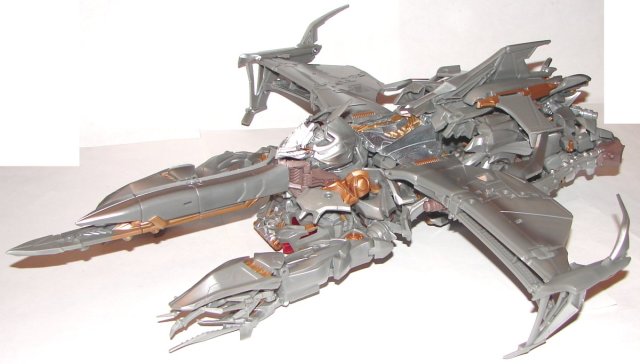 Vehicle Mode: I wish they had skipped movie and Revenge of the Fallen Megatron and gone right to Dark of the Moon for a Masterpiece Megatron. While he looks great in robot mode, his alternate modes in the first two movies suck. Both are just, let’s create a cool robot and fold it into something vaguely resembling a recognizable vehicle. I guess it is pretty accurate. Unfortunately Megatron has way too much soft plastic. His upper wing fins were bent to hell right out of the box.