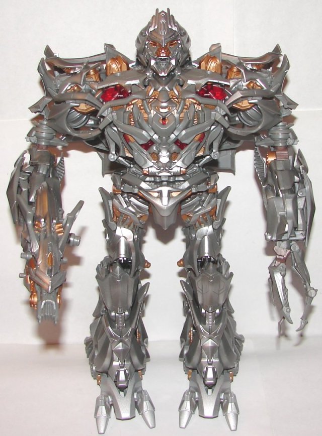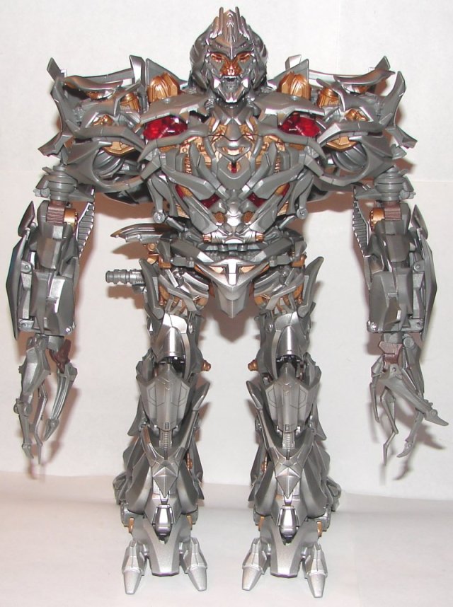 Robot Mode: In robot mode Megatron looks pretty great. He has a hinged jaw, though that hardly feels necessary. He has accessories to simulate some of his weapons from the movie.