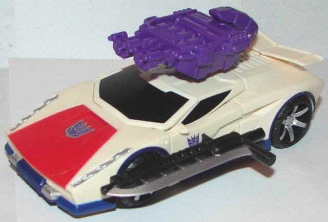 Please read my previous reviews of this mold: Generations Dead End, Generations Brake-Neck, Generations Streetwise, Generations Prowl, Unite Warriors Streetwise, Generations Smokescreen, Generations G2 Dead End, Generations G2 Brake-Neck, Generations Dust Up, Botcon Bluestreak, Generations Lightspeed, Botcon Unit-3, Unite Warriors Flowspade, Unite Warriors Prowl, Unite Warriors Wildrider (See Below)