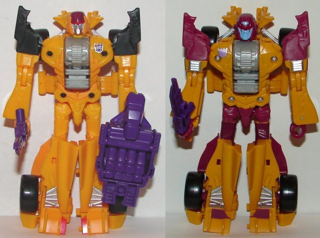 Hasbro phoned in their version of Wildrider (Brake-Neck). They didn’t bother paint his back window. I prefer the paintjob on the Takara version, especially the lighter color windows. As with all the rest it is more cartoon accurate while the Hasbro version is more toy accurate. In robot mode I could go either way. The Hasbro version is more colorful, but the Takara version is great looking too.