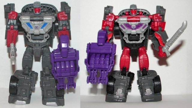Again, Dead End is more animation accurate which means losing the gray side panels and the striping in car mode. In robot mode he gets black shoulders and a gray chest and torso with some other changes as well. I kind of like the red chest on the Hasbro version, but both look great.