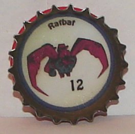 There are twelve in the set and the card has peel offs to reveal adhesive so you can mount the bottle caps to the card. Unfortunately, there is no trademark or manufacturing information on the card, but there is a clue to the origin on the caps themselves.