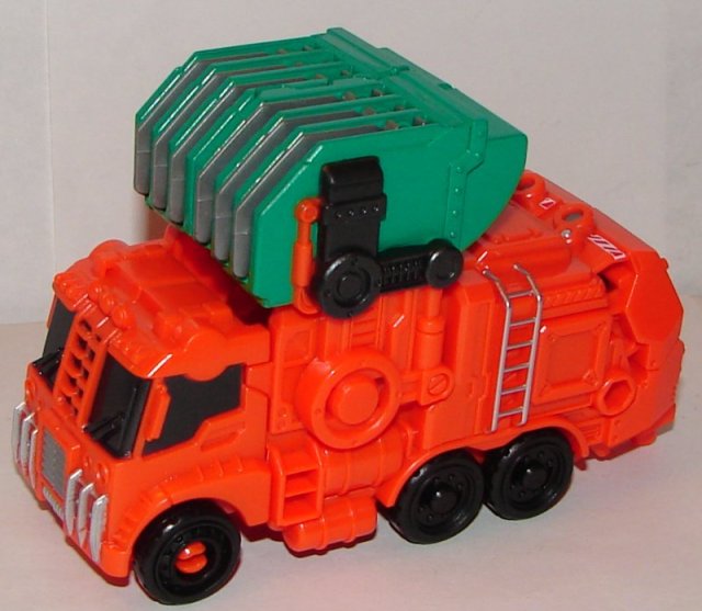 So…why does he have Optimus Prime’s head when combined with Trash Crash? I don’t get it. Anyway. He’s not bad looking, but the spring loaded arms don’t work very well.