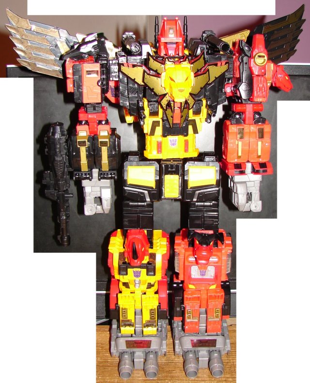 Much like Devastator, Predaking is great when combined, but most of his component parts were just bad. He mostly suffered from the decision to make Razorclaw the same size as his limbs. That worked on the G1, but not here. He also had sooooooo many stickers.