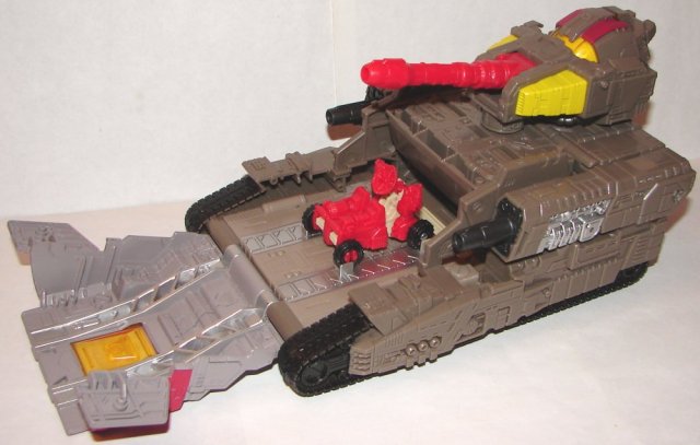 Overall: So, could they have given us some more bells and whistles? Sure. They could have motorized the tank, and/or made it sit on the track better (or deepened the track). They could have given him lights and sounds. They could have improved Countdown’s third mode. All that aside, this is one of the greatest toys Hasbro has EVER made, and truly worthy of the name Omega Supreme. He is the alpha and the…well, you get the idea. 🙂 This is the Titan Class toy Hasbro should have repainted for SDCC. I’m totally down for a Guardian Robot version of this mold. Maybe if another Hascon ever happens they can do it for then. It would be a crime if they never repainted him. In fact, here’s an idea that will absolutely never happen, but could be the greatest convention exclusive ever. Modify Omega Supreme with some of the things he didn’t have, lights and sound, motorization, rubber tires, a deeper track. They could even add some extensions pieces to make the track longer. Then you modify his nemesis, Devastator! You fix some of his issues, use some of the Takara modifications and improve his paint job and accessories. Then release them in a 2-pack. I’d be all in for that set. Pity it will never happen.