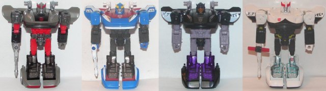 Bluestreak looks great in vehicle mode. I think this mold looks much better in gray and black than it would have in all gray, though I’ll be surprised if they don’t do that version too down the road. Too bad we can’t get it in blue and silver. In robot mode Bluestreak looks pretty much perfect. He comes with all his correct weapons unlike Prowl and Barricade. You can read my Barricade review for more on that.