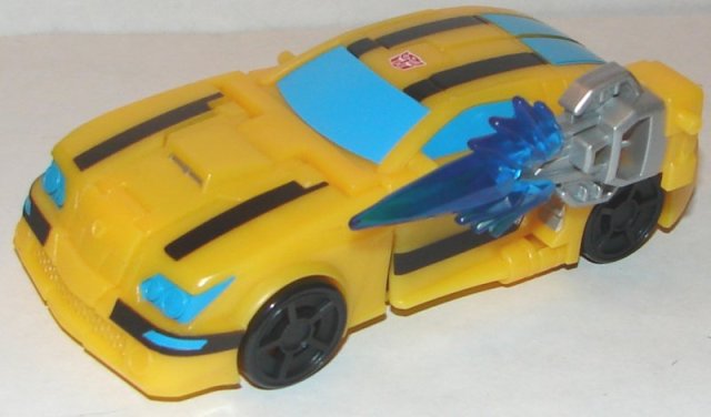 Vehicle Mode: Bumblebee looks great vehicle mode. I love the design. He has pretty good paint apps. They painted his rear window, which they usually fail to do. It would have been nice to have his grill painted. The only problem is that there is nowhere to store his black gun in vehicle mode.