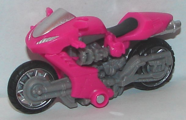 Their motorcycle modes are all pretty great. Their robot modes could have been a lot better. I like that they all come with stands so they can stand up, though it’s hard to get them balanced, they tend to want to tip over. The instructions show the part on Chromia’s shoulder going on Arcee. For some reason Elita-1 has a tire for a hand. That must come in wheely handy. 🙂 Chromia and Elita-1 are a little better than Arcee. Arcee’s legs are only connected to her body on one side, which looks stupid.