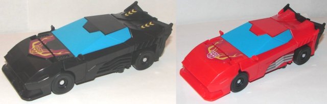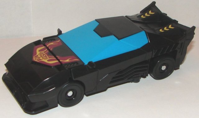 Hot Rod looks really cool in black, and makes me even more excited for the Warrior Class Stealth Force Hot Rod that I still can’t find. I have long complained how ridiculous it is that so many, in fact most, of Hasbro’s Transformers One Step Changers actually transform in more than one step. This set, unlike single boxed One Step Changers, comes with an instruction sheet that shows how to transform Hot Rod in more than one step. Now, this package doesn’t actually say One Step Changer on it, but that’s what the toy is. It really made me laugh. Clearly Hasbro realizes how stupid calling them One Step Changers is, an yet they have never come up with a different name that might make more sense. Easy Changers? Turbo Changers?