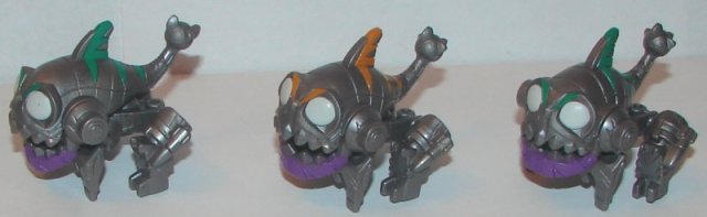 So, I can’t recall from the cartoon episode that included the Sharkticons if one of the three Sharkticon factions was green and another orange, but whether they had those colors in the cartoon or not, why make two of the toys the same color? When I found the set, I thought it was my eyes, and one of them was blue, but no, two of them are green and one orange. They’re kind of cute, though I wish you could see the green and orange in robot mode.