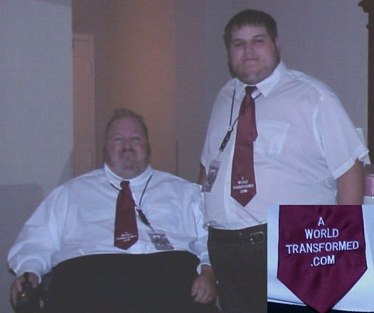 (My dad and I before the dinner at Botcon 2002. I had ties made with my web site on them, because if I had to wear a tie, why not?)