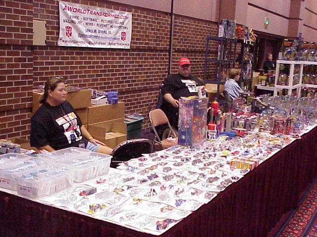 (My dad and my sister at our dealer table at Botcon 2002.)