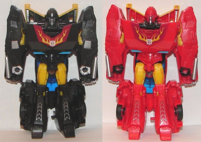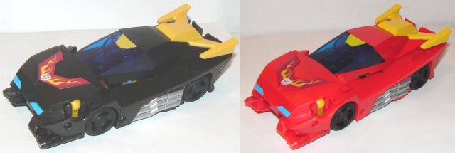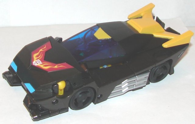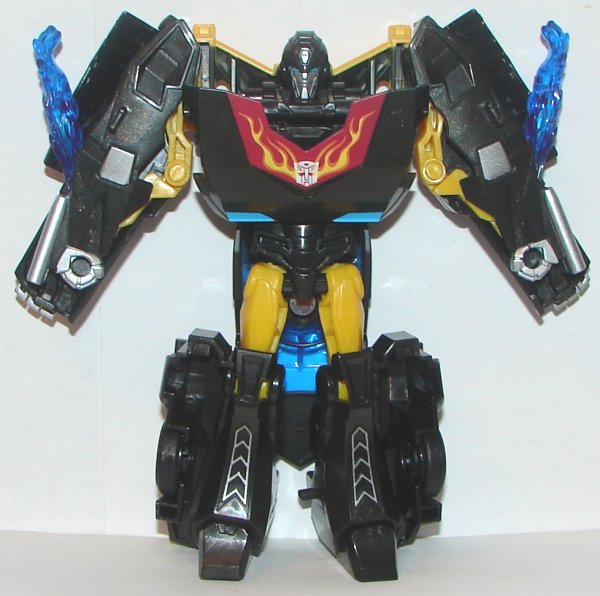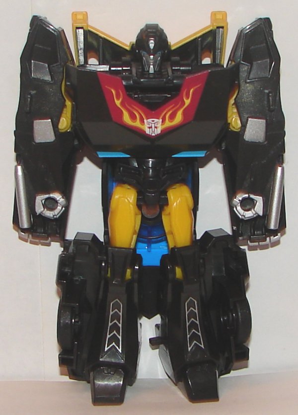 In my original review of this mold I didn’t even take a picture of him with “Fusion Flames” deployed, because they served no actual function and so I didn’t notice them. Here they are. They are rather underwhelming. Anyway. Hot Rod looks great in black.