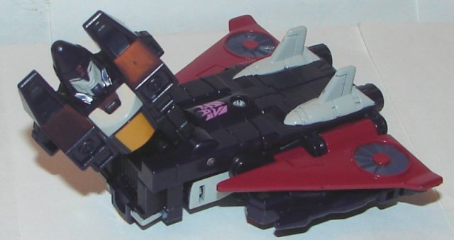 Wow, he has a vehicle mode! Oh, wait. My mistake, I’ve just got him mistransformed. His arms are not fully up in position under his wings, which allows him to sort of look like he’s in vehicle mode, albeit one with a weird looking cockpit. When you do push his arms up into the correct position, the nose of the jet pops up and spins. In robot mode he actually looks pretty great.