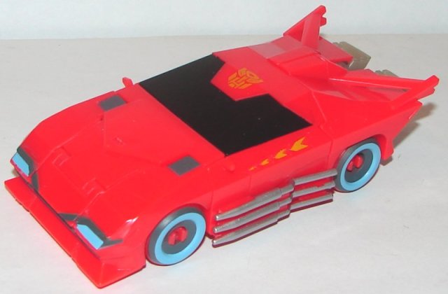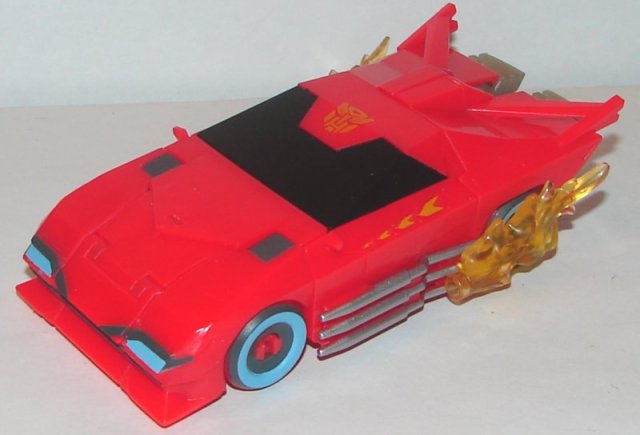 Vehicle Mode: Hot Rod’s vehicle mode wouldn’t look bad if they had only painted his spoiler yellow. As is, I really don’t like it. It’s just cheap to leave out such an essential paint app. Add to that how stupid those flames look on the sides. They aren’t coming from the back of the pipes, they are stuck onto the outside of them. They could have easily make them attach to the ends of the pipes instead.