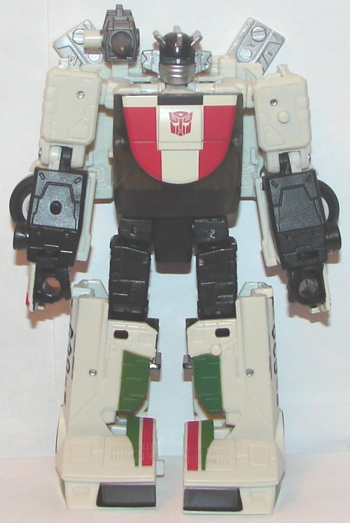 Robot Mode: Wheeljack’s robot mode is pretty good. He has a great head sculpt and paint apps. My only issue with him is his weapons. If they are going for the toy version of Wheeljack, then he needed a larger shoulder weapon and he needed two of them. I know it would have been less accurate, but I really would have preferred he have a more animation style shoulder weapon and hand gun, or at very least the hand gun. Wheeljack is being remolded into Sunstreaker, who I believe does have a gun, so they are clearly being cheap again by not including it with Wheeljack.