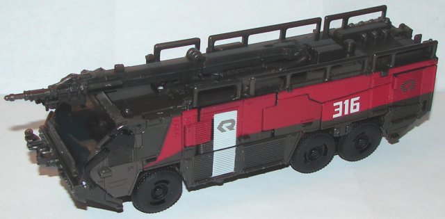 Vehicle Mode: Like many Studio Series toys, I’ve had a hell of a time getting all the panels that make up the side of the vehicle to line up on both side. There is a separation you can’t see, it’s on the far side of the toy. I’m sure if I fought with it for another hour I could get it right, but I don’t want to spend an hour doing that. That issue aside, Sentinel Prime looks fantastic in vehicle mode, though its not a very movie accurate that paintjob. The arm for his water cannon should have been silver. The railings on top and most of the top of the vehicle should have been silver too. Lot’s of other small paint apps are missing. Great design for the vehicle, but as usual, Hasbro failed to follow through on the paint job, at least in vehicle mode.