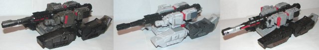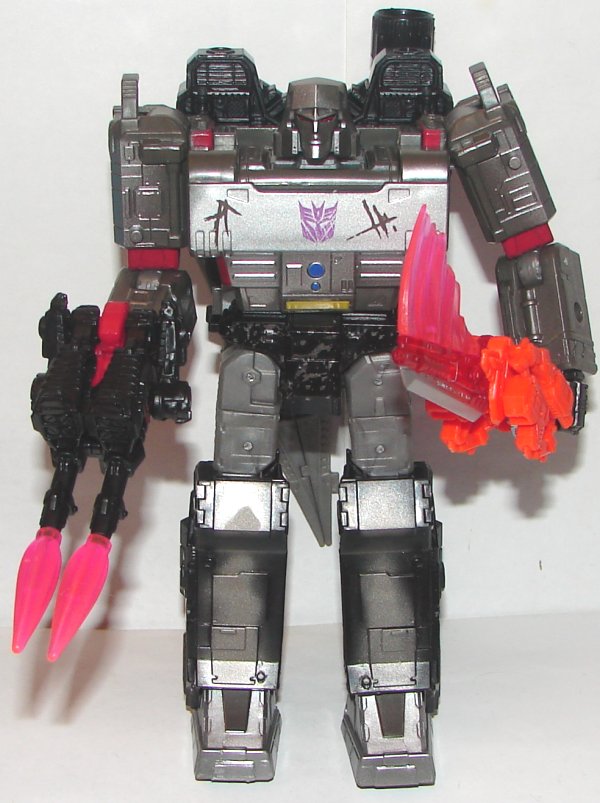 Would it kill them to give us just one version of this mold without either the animated cell shading or battle damage? Having said that, Megatron is absolutely awesome. I love the silver/gunmetal gray paint, and while I still want an un-battle-damaged version, he looks really cool with the battle damage all over him.