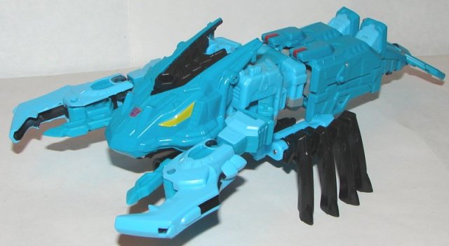 Weapon Mode: There is a serious flaw in the design of his gun mode. His creature legs get in the way of mounting him to the hand/base as shown in the instructions. You need to bend up the fingers, and it rests on both the hand/stand and the legs. Not a huge problem, but the proper way to configure him as a gun should have been in the instructions.