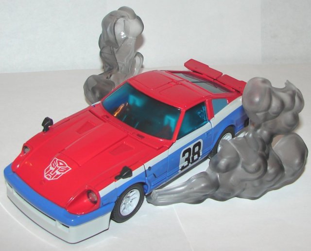 I have been pretty indifferent to these plus versions of Masterpiece toys. With the exception of Shockwave, whose plus was actually the toy version, and a huge improvement, and Streak, they have felt very unnecessary. Masterpiece Anime Smokescreen is pretty much the same. The new paint job omits the silver paint for the more animation accurate gray, but the silver looks much better. He has new anime accurate faces, but I prefer the toy faces. When I saw pictures of the smoke effect he comes with, I thought that might be cool, but it does not attach to him. You just position it beside (in halves) or behind him. I would find it more interesting if it could attach. Also, it looks silly when you split it in half to go on each side. That would have been a cool accessory if there were two of them and they could be attached to him. Unfortunately, not. If you have the original, this is probably an easy skip.