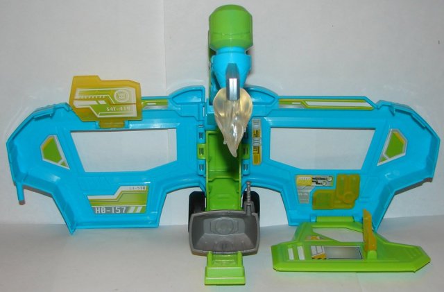 These Command Center Playsets include a Rescan figure and trailer that opens up into a command center. Hoist is a Triplechanger of sorts. He is a tow truck, but his tow hook can be stowed so that he can pull the trailer. The trailer is a fairly standard playset without much to it. He has a tool/weapon (the end is molded like a flame) in the trailer that can also be mounted on his back. This lights up when a button is pressed.
